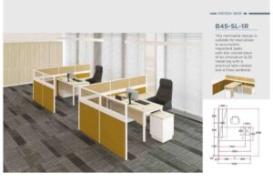 This minimalist design is suitable for executives to accomplish important tasks with the combination of an innovative SL55 metal leg with a practical side cabinet and a fixed pedestal.
