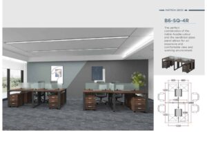 The perfect combination of the noble Acadia colour and the sandblast glass panel allows for an expansive and comfortable view and working environment.