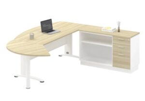 Bring efficiency and elegance to your workspace with this L-shaped office desk featuring a sleek light wood finish and sturdy white frame. Perfect for both professional offices and home setups, this desk combines functionality with a clean, modern design that enhances productivity and keeps your workspace organized.