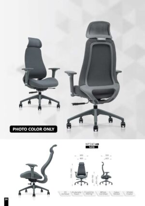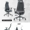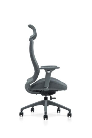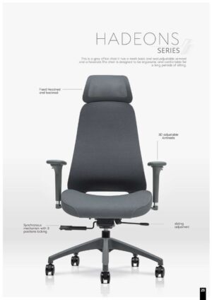 The Hadeons Series is a grey office chair designed for ergonomic comfort, particularly during long periods of sitting.
