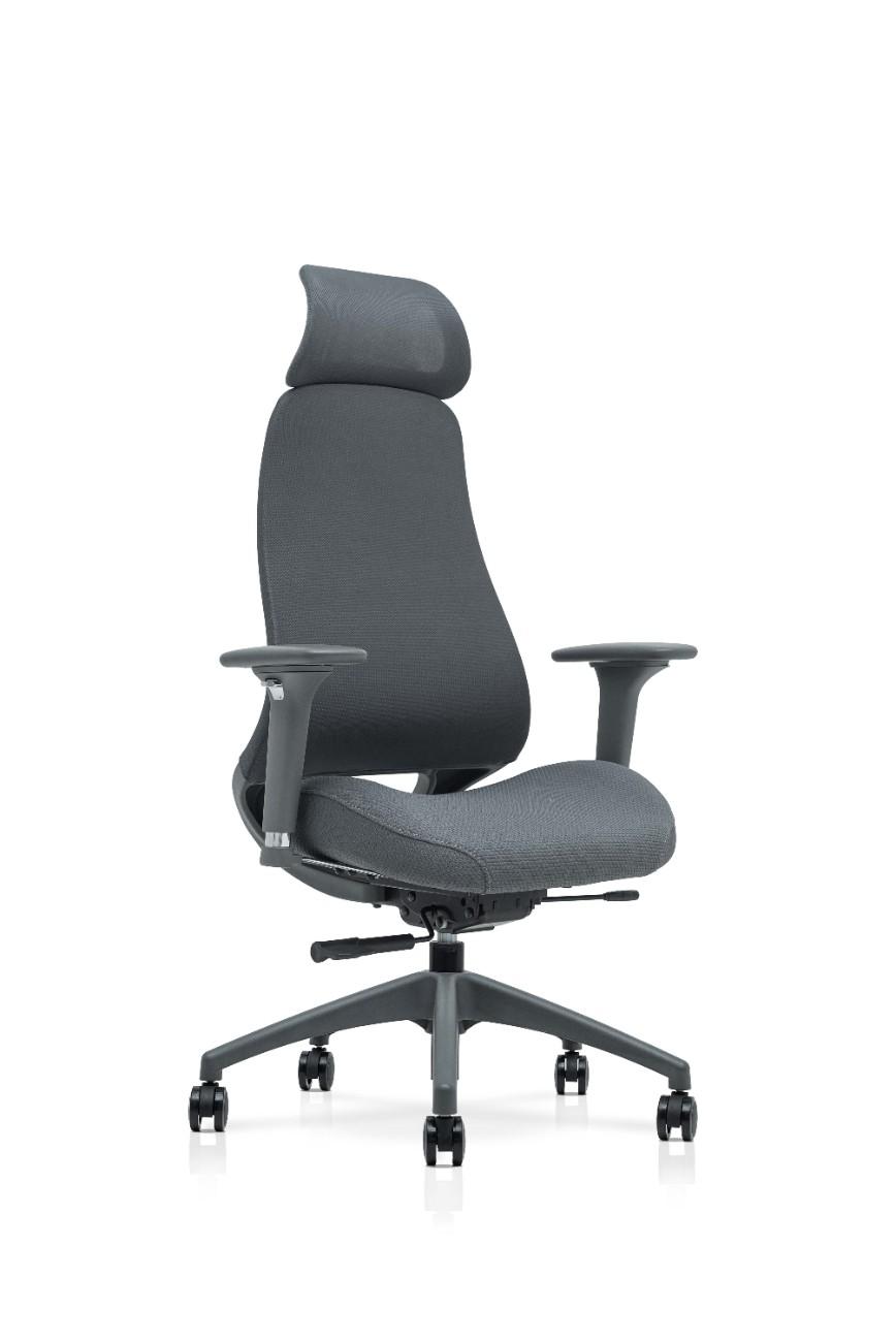 The Hadeons Series is a grey office chair designed for ergonomic comfort, particularly during long periods of sitting.