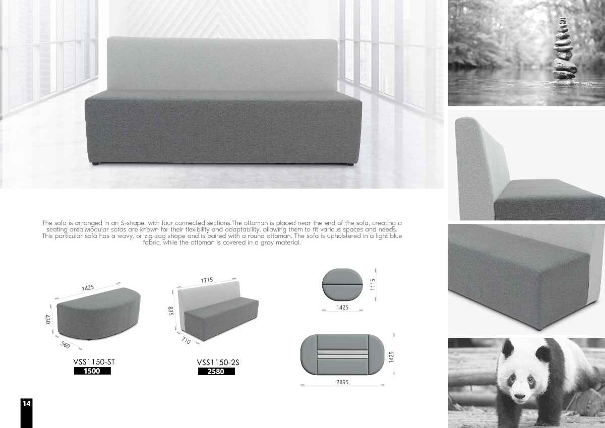 This type of furniture is designed with versatility in mind, allowing for various configurations to suit different spaces and preferences. Key features of a quality sofa like this often include a sturdy frame, well-constructed joints, and comfortable Cushion filling. The neutral gray color and modern design make it suitable for a variety of settings, such as office spaces or public waiting areas