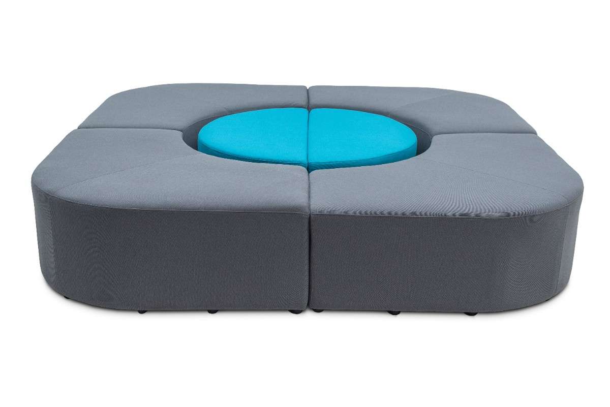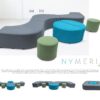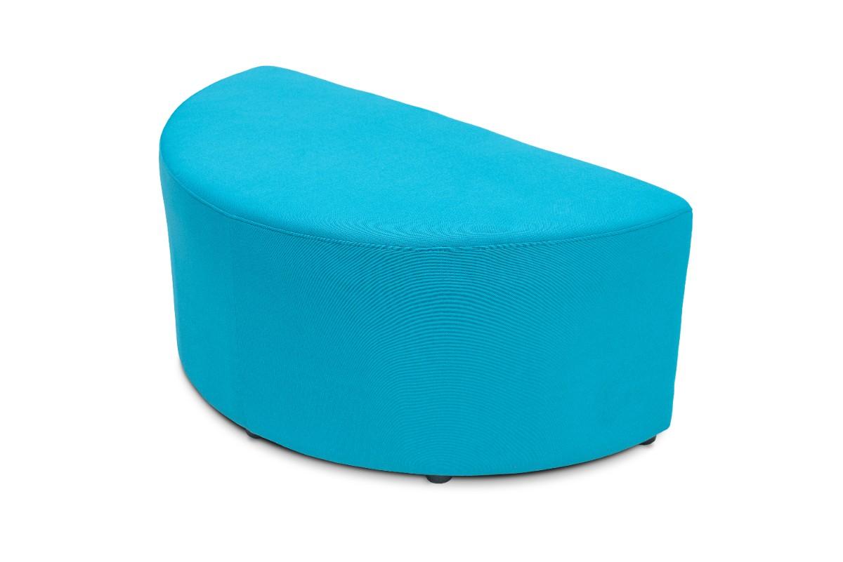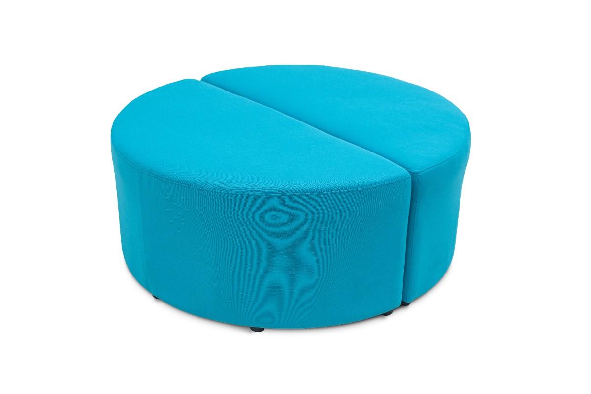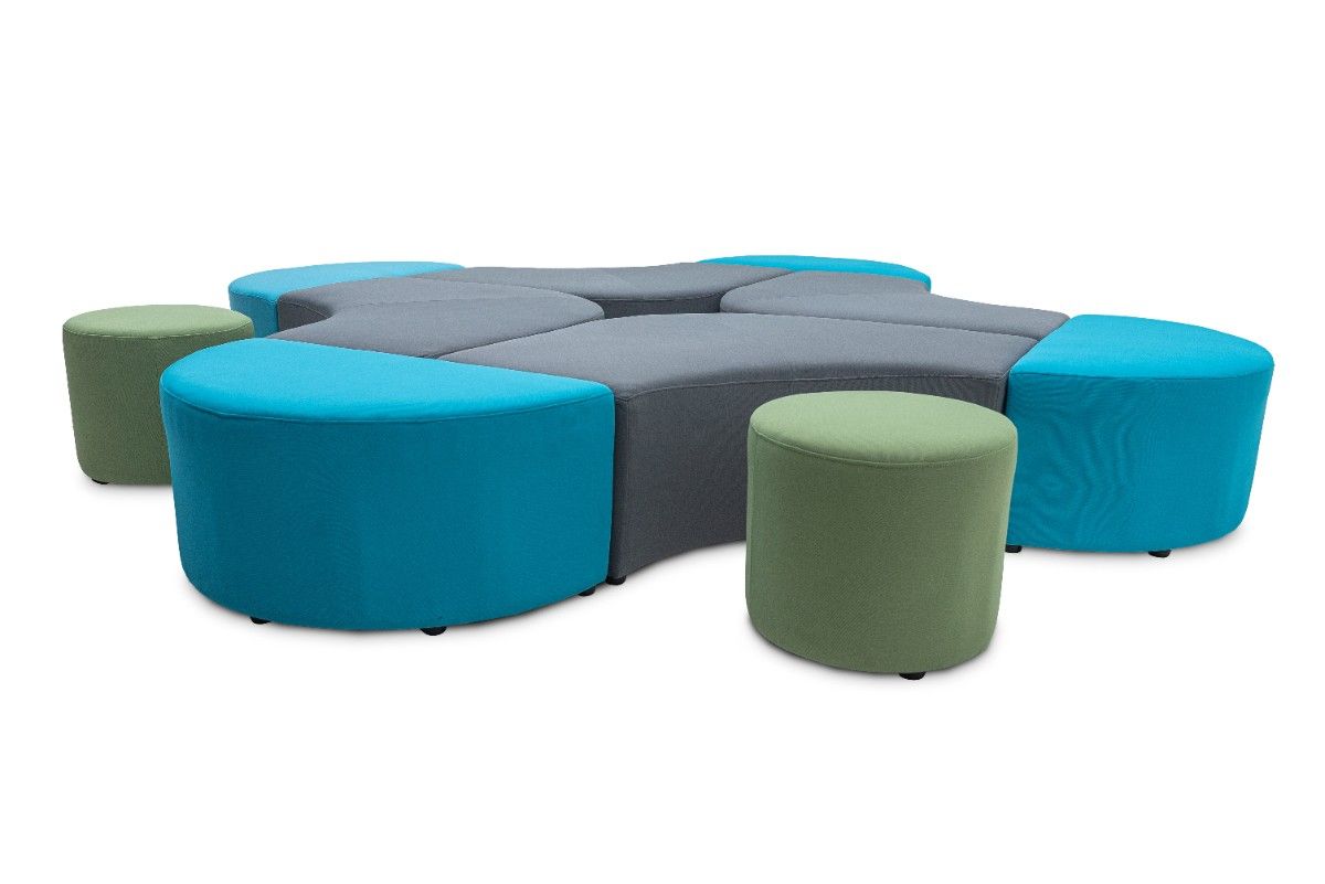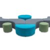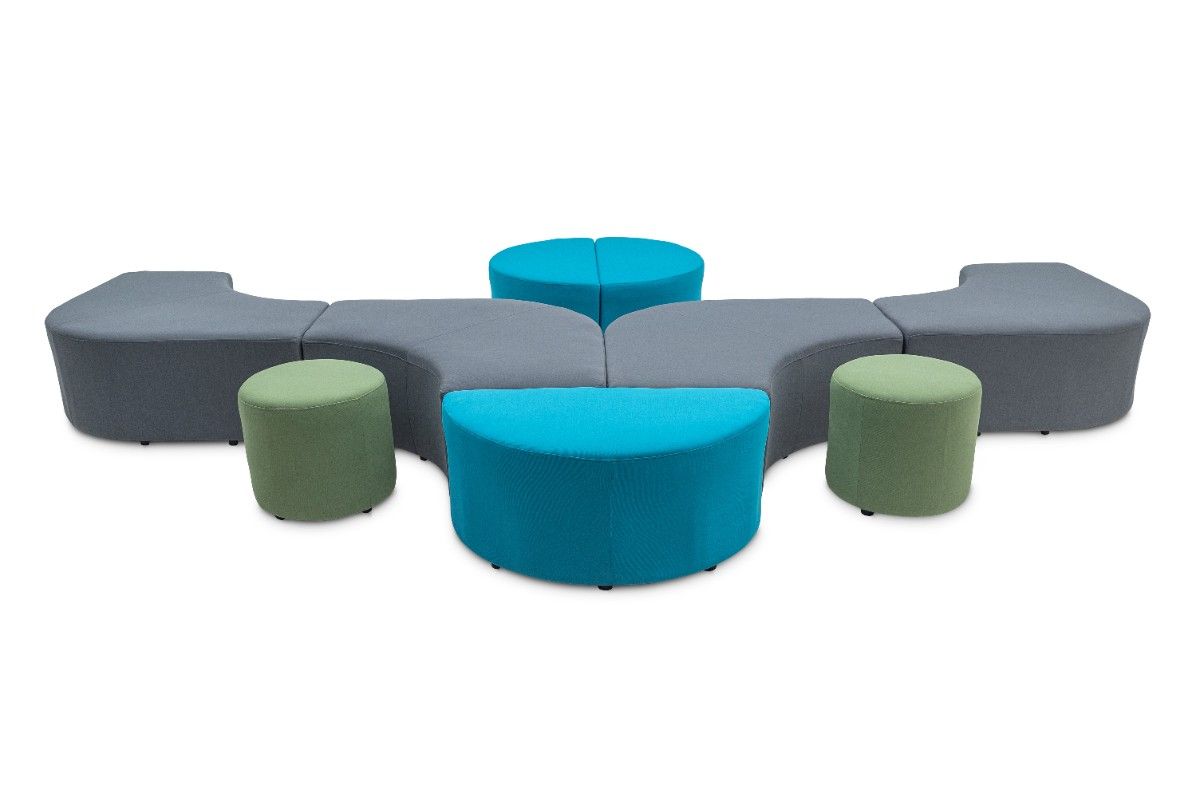 The model shows a modular ottoman set, specifically the Offices To Go Half Round Ottoman, along with two Puff Set Round stools.